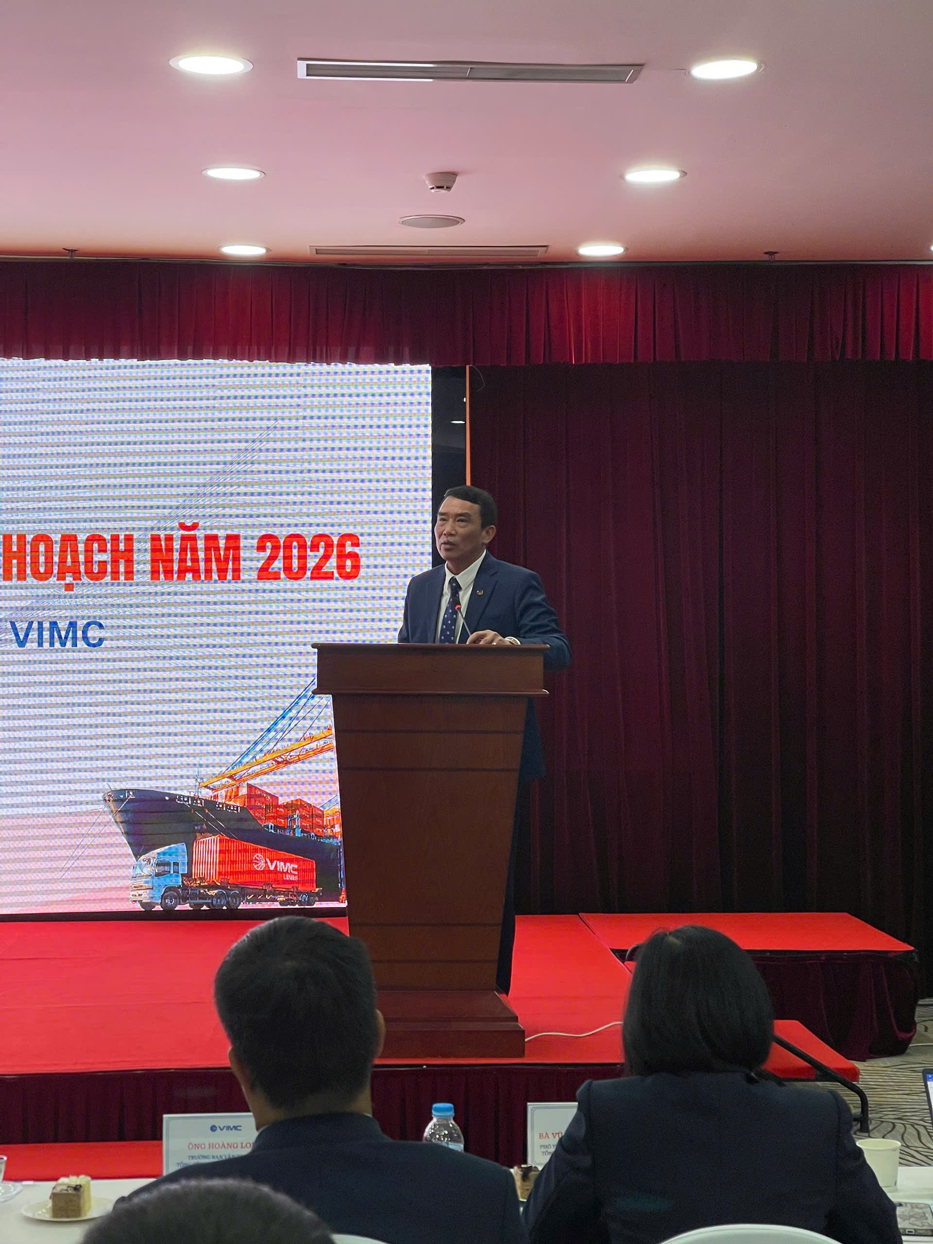 Phát biểu tại Hội nghị, ông Đỗ Hùng Dương, Thành viên HĐQT Tổng công ty Hàng hải Việt Nam ghi nhận và biểu dương những cố gắng, nỗ lực và kết quả đạt được của toàn thể CBCNV Công ty cổ phần Vận tải Container VIMC trong năm 2025. Đồng chí Hùng Dương cũng nhấn mạnh trong chiến lược phát triển của Tổng công ty, thì VIMC LINES là doanh nghiệp vận tải container được định hướng trụ cột, mũi nhọn, phát triển dài hạn. Về công tác phát triển đội tàu, đồng chí Hùng Dương cũng đề nghị Công ty tránh đầu tư tàu với giá cao, mà có thể tiến hành thuê tàu vào khai thác, mua chỗ/trao đổi chỗ để đảm bảo sản lượng, doanh thu. Công ty cần đảm bảo được quản trị và kế hoạch kinh doanh, xây dựng các gói dịch vụ khác biệt, đột phá nhằm mở rộng thị phần và số lượng khách hàng. Đồng thời, Công ty cũng phải rà soát lại toàn bộ hệ thống quy trình và số hóa; xây dựng chương trình/kế hoạch hành động cụ thể, ví dụ như: đầu tư mở rộng thiết bị trong cảng, dự án đầu tư tàu/vỏ container, cơ chế lương thưởng, đổi mới sáng tạo; áp dụng mọi biện pháp, cách thức, và tận dụng lợi thế của một Công ty trẻ và nỗ lực hết mình để hoàn thành kế hoạch năm 2026.