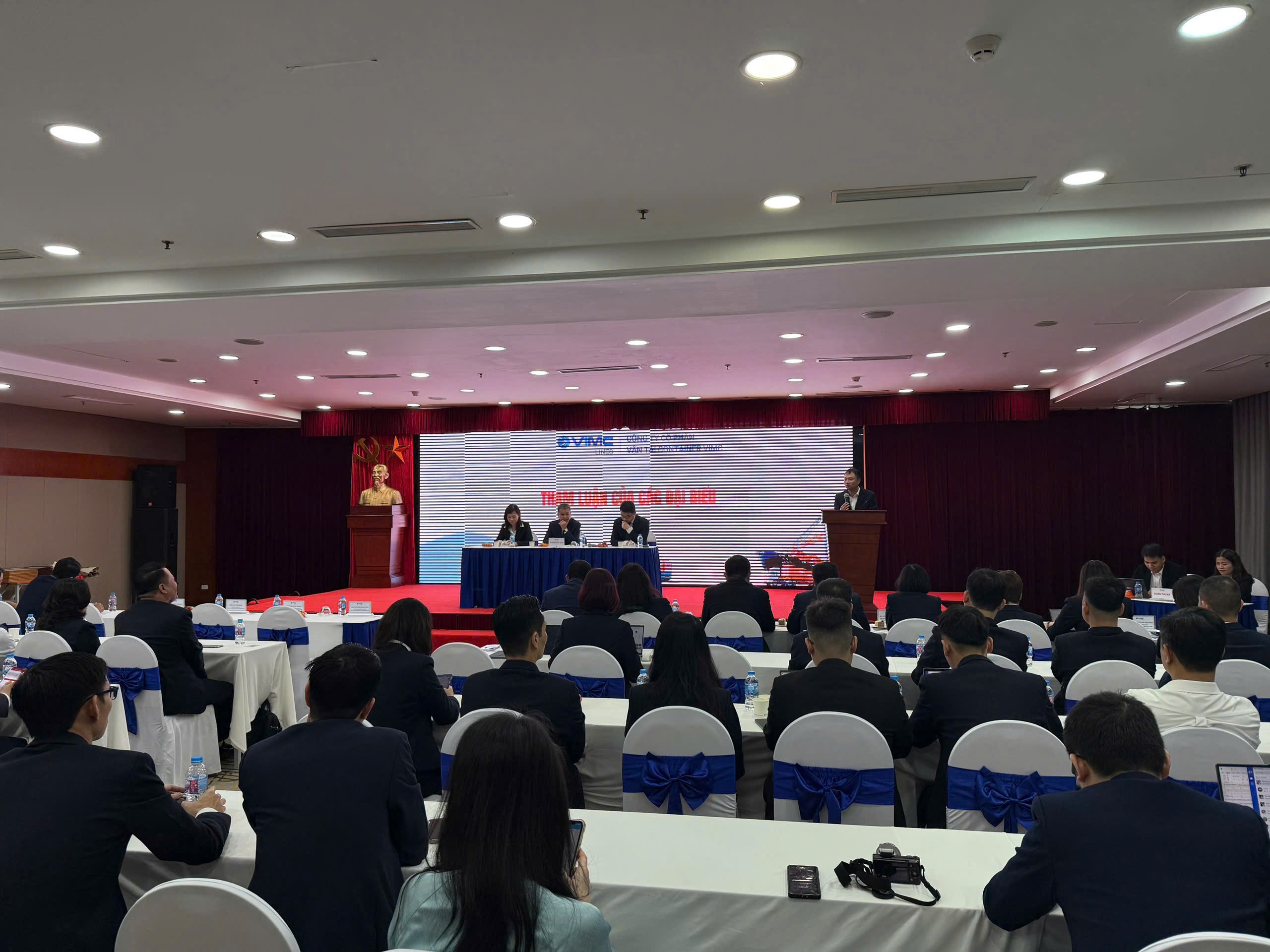 Về phía Công ty có ông Nguyễn Ngọc Ánh – Chủ tịch HĐQT, bà Phan Thị Nhị Hà – Trưởng ban Kiểm soát; bà Đỗ Thị Ngọc Trang – Bí thư Đảng uỷ, Uỷ viên HĐQT, Tổng Giám đốc; ông Đỗ Tuấn Nam – Chủ tịch Công đoàn, Phó Tổng giám đốc và 56 đại biểu là Thành viên HĐQT, Ban Kiểm soát, BCH Công đoàn, Bí thư Đoàn thanh niên Công ty, đại biểu đại diện cho cán bộ nhân viên, người lao động và đại biểu đại diện cho khối thuyền viên.